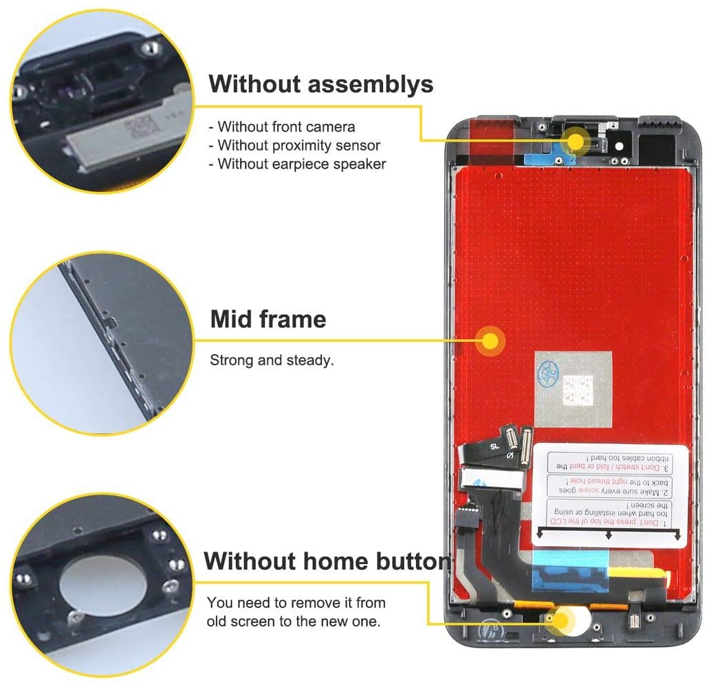 【Package Included】- The package includes a new LCD screen replacement for iPhone 7 Plus and required tools to replace the screen. This part DOES NOT include front camera, home button, earpiece speaker and proximity sensor, which means you will need to transfer them from your old screen onto this new one.