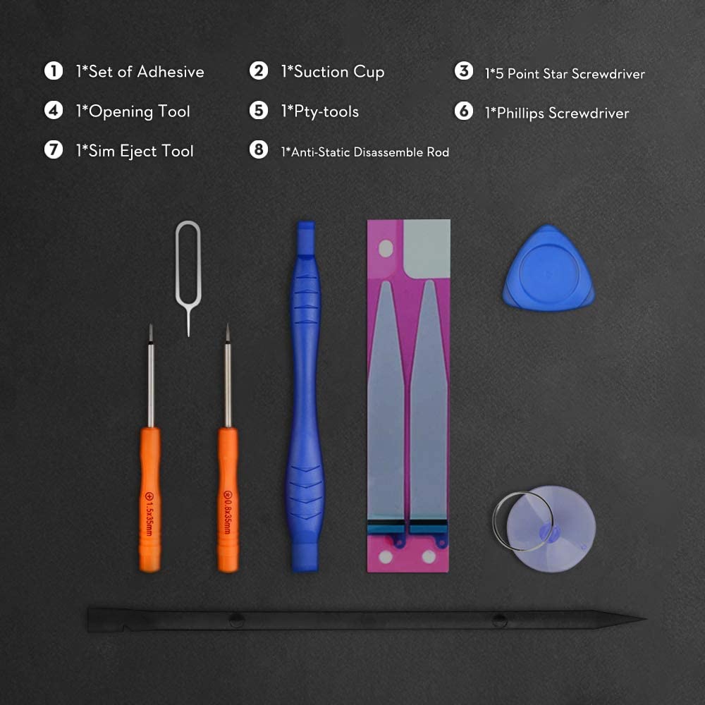 1* Simple Repair Tools (Battery Adhesive Strips, Screwdriver, Suction Handle, Spudger, Opening pick, Sim Eject Tool)