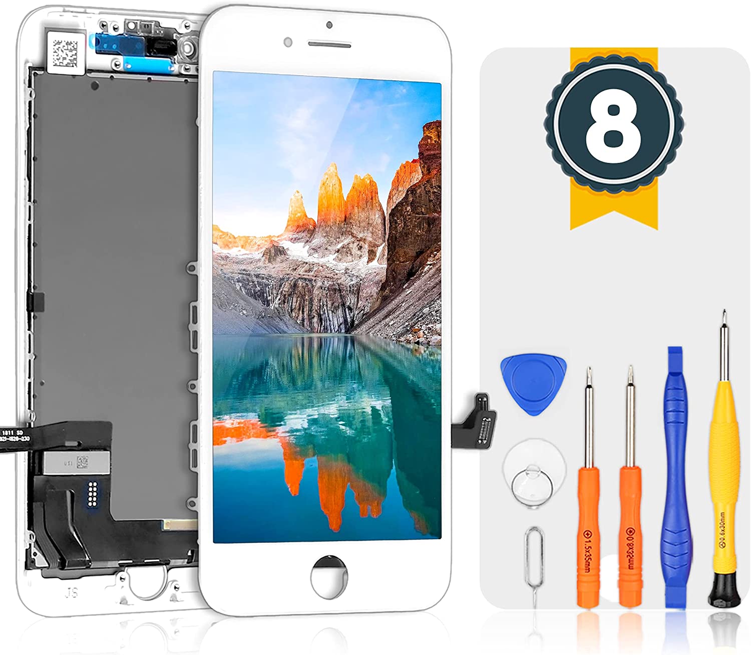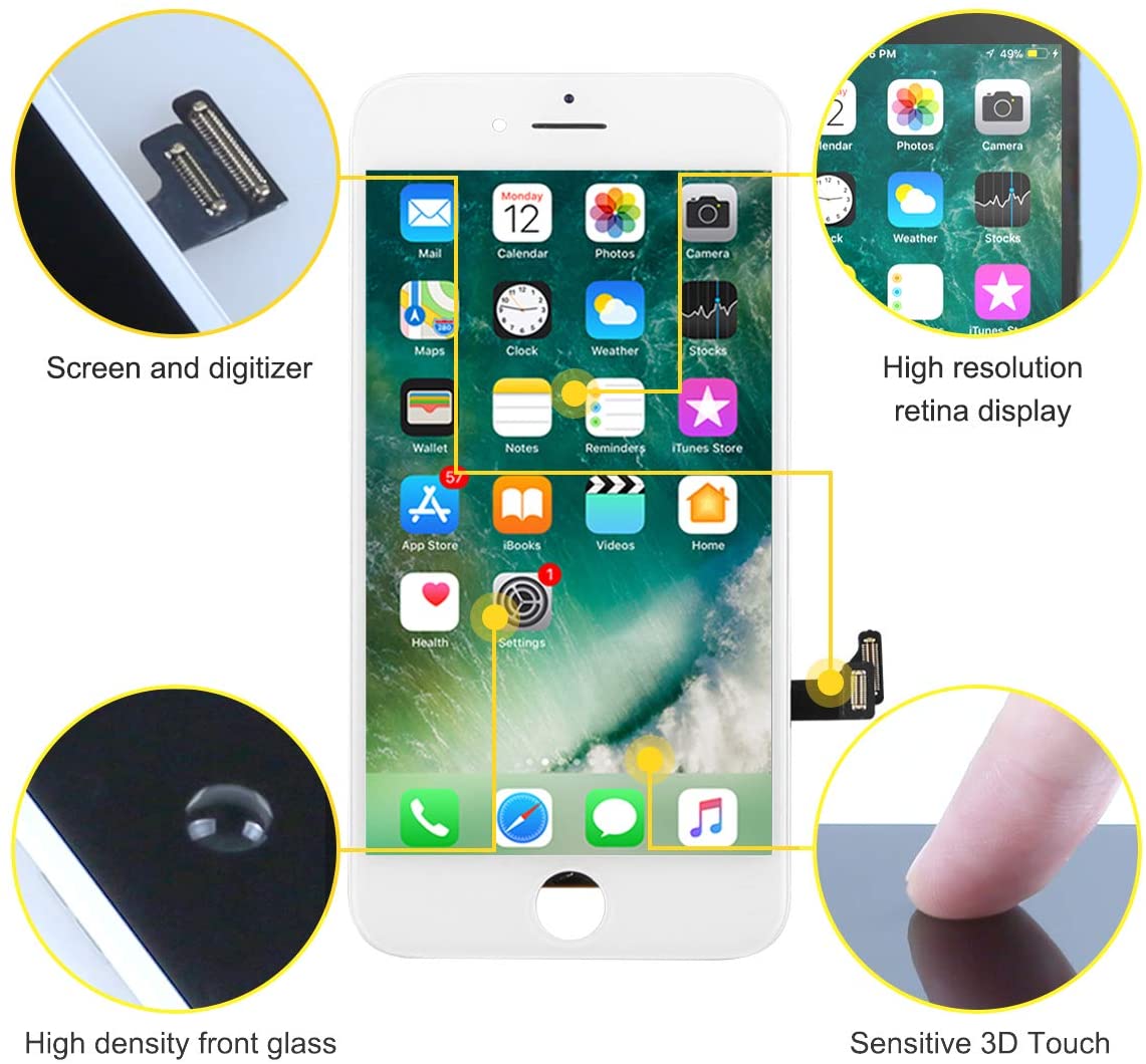 【Package Included】- The package includes a new LCD screen replacement for iPhone 8 and required tools to replace the screen. This part DOES NOT include front camera, home button, earpiece speaker and proximity sensor, which means you will need to transfer them from your old screen onto this new one.